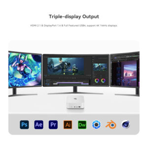 - Tredobbelt skærmudgang DP 1.4, HDMI 2.0, USB-C
